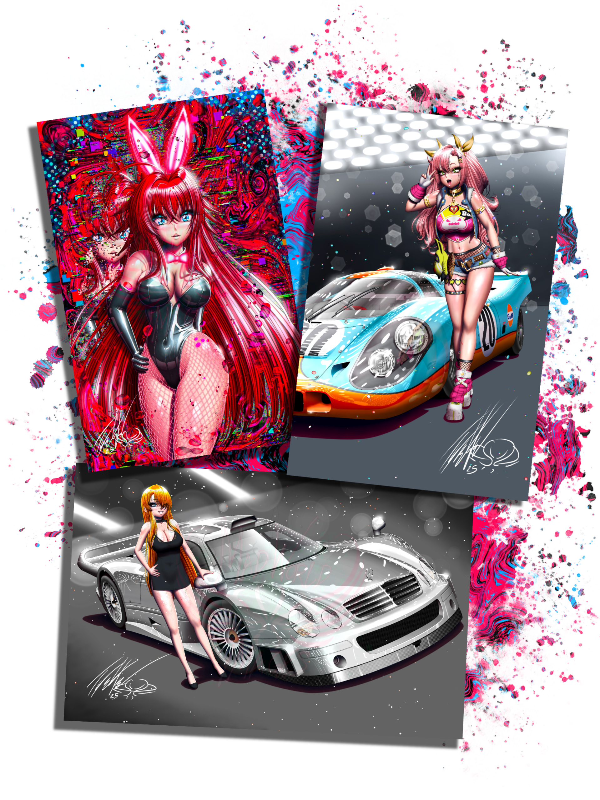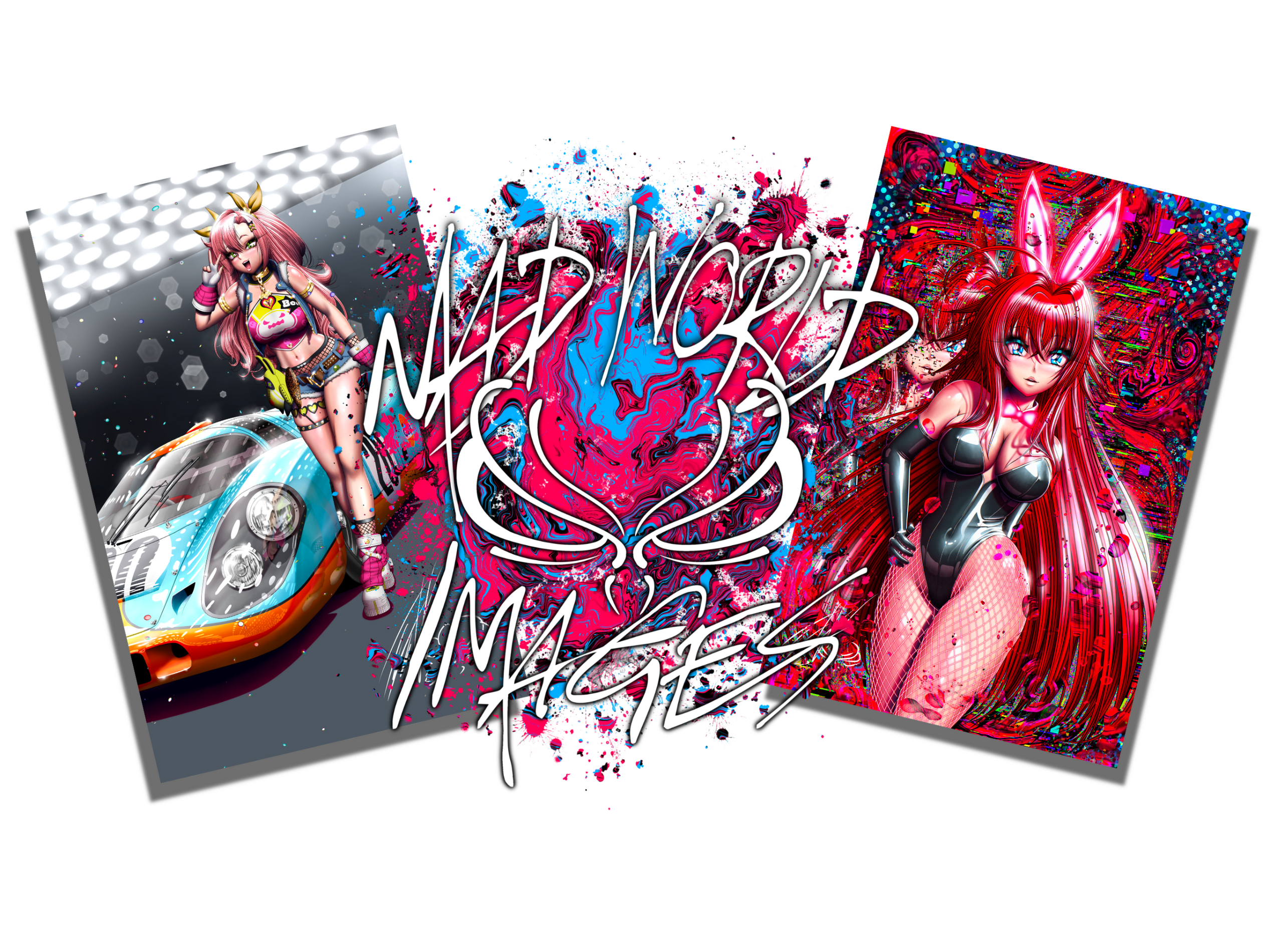 Hello!!!! My name is Mad World Images or you can call me Mad for short. I make artworks in both digital and traditional medias, I specialize in Anime/Manga and Automotive Arts.I’ve been drawing since childhood but started professionally in 2018 doing automotive art doing renderings for automotive shops kinda like what an automotive designer would do. Then in 2020 I’ve decided to get into anime and manga then started professionally in 2021 in which became my biggest draw today including my anime pinups with cars.I an streamer on KICK and Twitch drawing my artworks live and some gaming sessions as well two days a week.