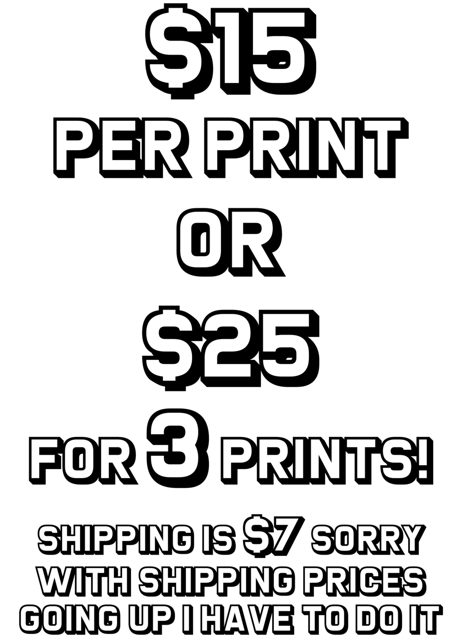 Online print orders are available now! It took me awhile to get the whole online system working but it’s now finally happening. So I want to let all know I’m doing this all on my own the ordering, printing, and shipping. I don’t have a company helping me with this so it will take about a week to do the shipping but either way you will be updated and get a copy of the tracking number for your order just bare with me on this lol. Some artworks are not available to purchase it will be in the name of the artworks.(Orders are ONLY in the United States I can’t do international shipping it will cost way too much for me and you.)